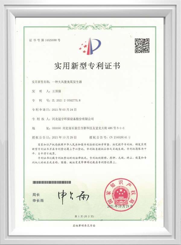 The company has always been committed to technological research and development and innovation. It has a research and development team composed of environmental protection experts and professional engineers, and has established cooperative relations with many domestic and foreign scientific research institutions. The company has been designated as the "Hebei University of Science and Technology" and "Hebei Mechanical Design and Research Institute" industry-university-research base. In recent years, The company has achieved multiple technological breakthroughs in fields such as UV advanced oxidation technology, electrocatalytic advanced oxidation technology, and ozone generators. For instance, the innovation of advanced electrocatalytic oxidation technology has significantly enhanced the efficiency of advanced electrocatalytic oxidation reactions by developing and screening electrodes with high cost performance.