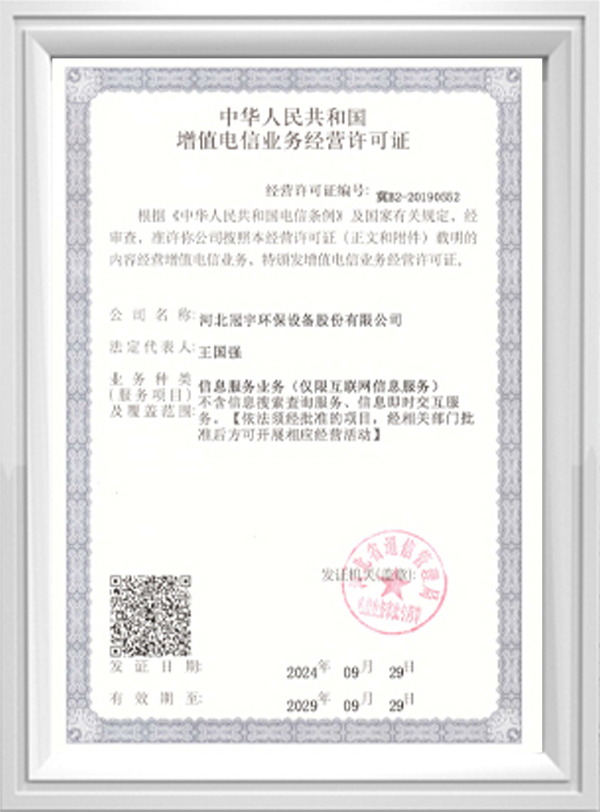 It is the president unit of Shijiazhuang Environmental Service Industry Chamber of Commerce and the vice president unit of Hebei Environmental Protection Industry Association. The company adheres to the core concept of "innovation-driven and green environmental protection", and is committed to the treatment of production water in urban water supply and the pharmaceutical and chemical industries, as well as the treatment of wastewater in municipal and printing and dyeing industries. Relying on its independently developed advanced oxidation equipment, the company is committed to becoming a leading manufacturer of water flow environmental equipment and a one-stop solution service provider.